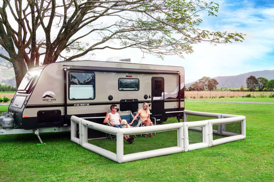The InflataFENCE is a modular system which can be easily adapted to suit different lengths of a caravan, campervan or motorhome AND even converted to a Standalone enclosure.