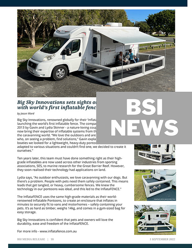 Big Sky Innovations sets sights on caravanning with the world's first inflatable fence for pets.